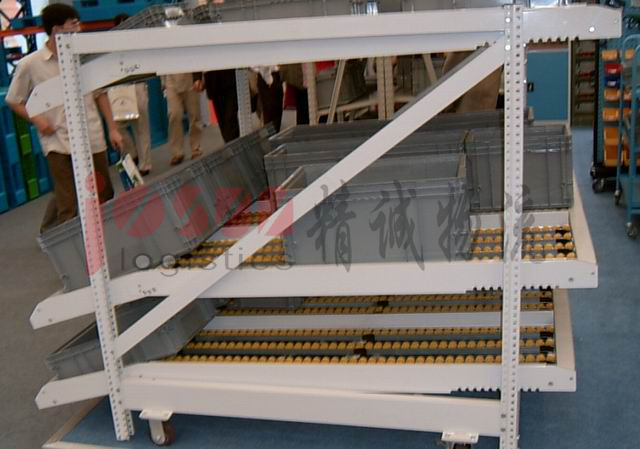 产品介绍:通过附在货架上的流利条滑动货物 用于物料补给和整理分类适用于生产线或装配线旁的物料存放物料能靠重力没滚轮下滑可搭配零件盒、周转箱结合使用货物先进先出,适用于大批量同类货物的存储空间利用率较高流利货架工厂实例