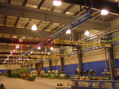 为了不影响操作,当工作区域内不允许有任何支撑结构时,组合梁式悬挂起重机是一个完美的选择。 高博组合式悬挂起重系统需要客户的厂房屋顶结构可承受足够强度、安全支撑起重机负载; 客户可在一套固定型轨上安装多个主梁,显著提升了生产效率; 该产品为钢质结构,起重量在75kg-2000kg之间,主梁总长可达10m(可选铝制主梁); 相较于传统梁式起重机,高博的专利封闭型轨设计,使其搬运所用力仅为传统梁式起重机的1/3; 桁架式钢轨设计,使跨度更大,安装布局有更多的灵活性。